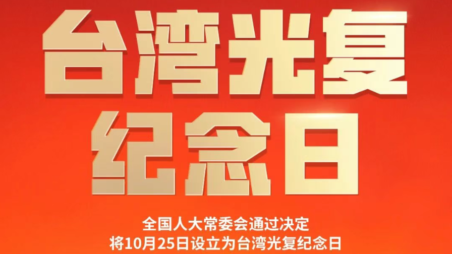 全国人大常委会通过决定 将10月25日设立为台湾光复纪念日