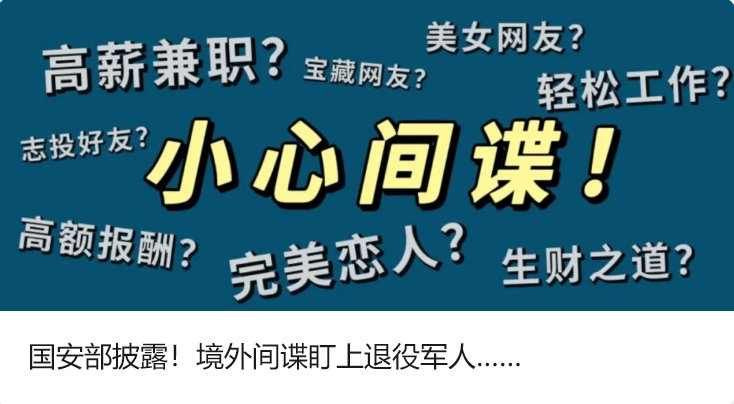 近年来,境外间谍情报机关瞄准我青年学生群体,以求职兼职等名义,拉拢、利诱甚至胁迫我个别青年学生为其从事涉密资料搜集等间谍活动及其他违法行为,给我国家安全带来威胁。相关案例警示我们,要当心“私人定制”的招聘陷阱,切勿踏入境外间谍情报机关的窃密圈套。
