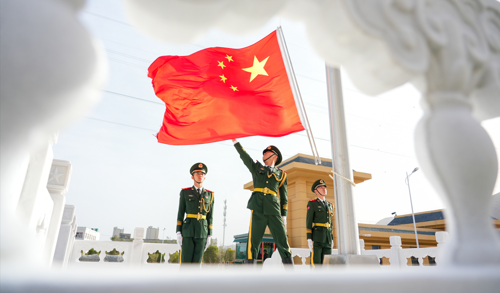 武警新疆总队某支队:与国旗合影 向祖国告白!