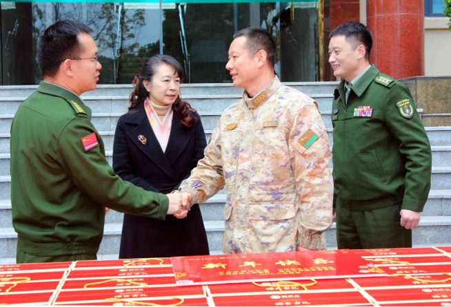 春节前夕,重庆市沙坪坝区组织慰问组到驻区部队走访慰问,把党的关心关爱送到驻区部队官兵。沙坪坝区人武部为军属送“福”字、春联、灯笼和光荣牌,传达党和政府对军属的关爱,营造社会尊重军人的氛围。让军人军属过一个幸福新年。