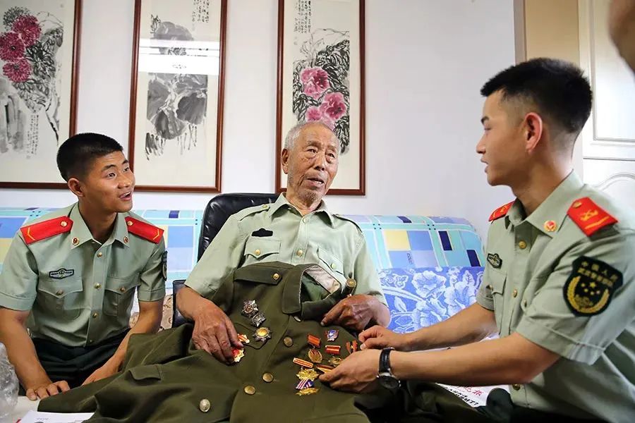 谭德本老人给武警宁夏总队银川支队机动大队官兵讲述抗战故事