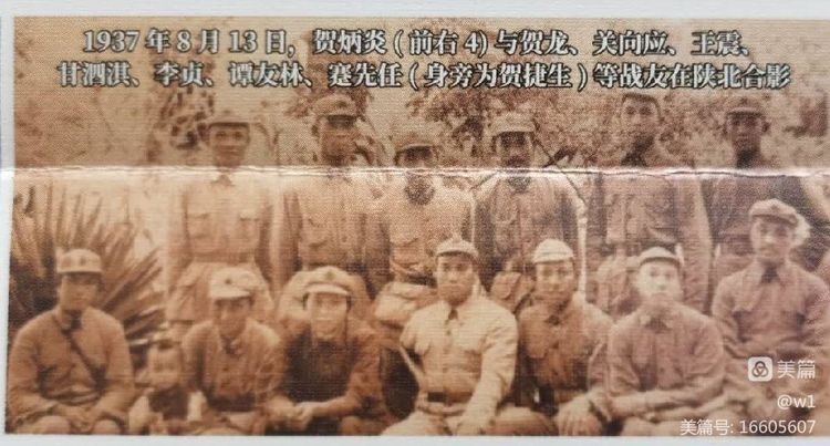 1937年3月,贺炳炎与贺龙、关向应、李井泉、王震、廖汉生等在陕西同官县陈炉镇合影。