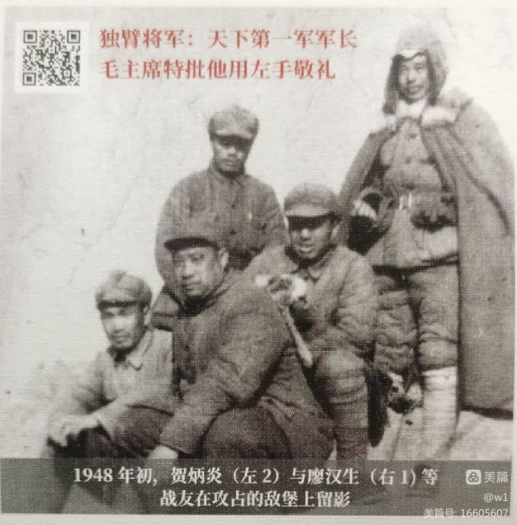1948年初,贺炳炎与廖汉生等战友在攻占的敌堡上留影。
